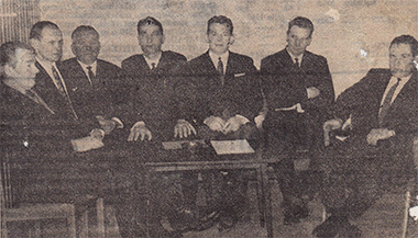 Yyterin pallon perustava kokous vuodelta 1967 Kaanaan vesitornissa. Eino Reunanen, Raimo Perkiömäki ja Erik Wallin kuvassa vasemmalla.